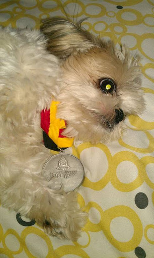ReplyDeleteLina, LOL! She was too lazy today to even pose with my medal.